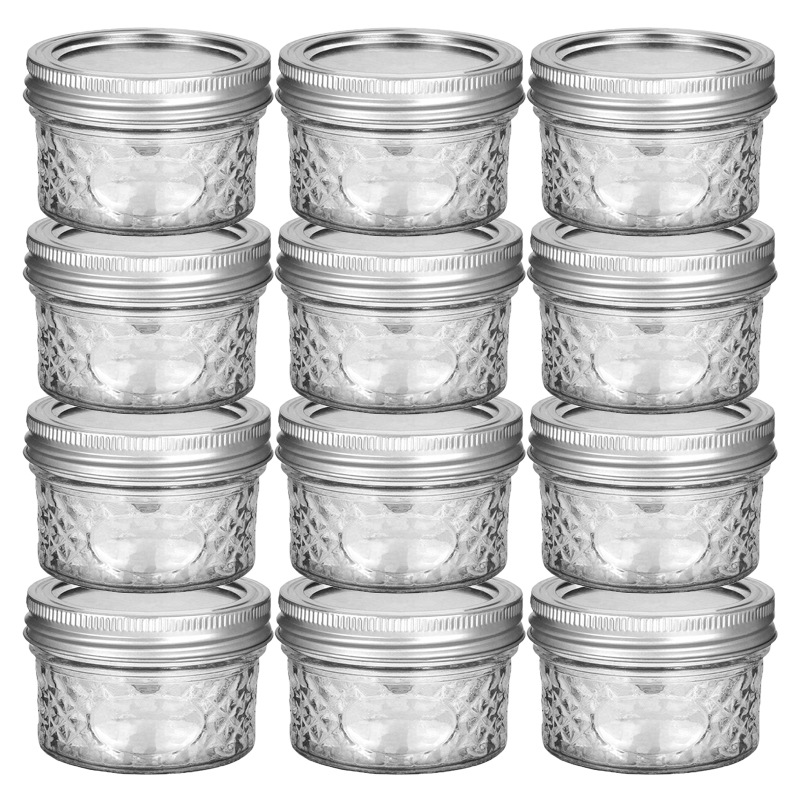 【碧朗93141】4ozダイヤモンドメイソン缶透明ガラスジャム密封缶アマゾンオート麦朝食カップ