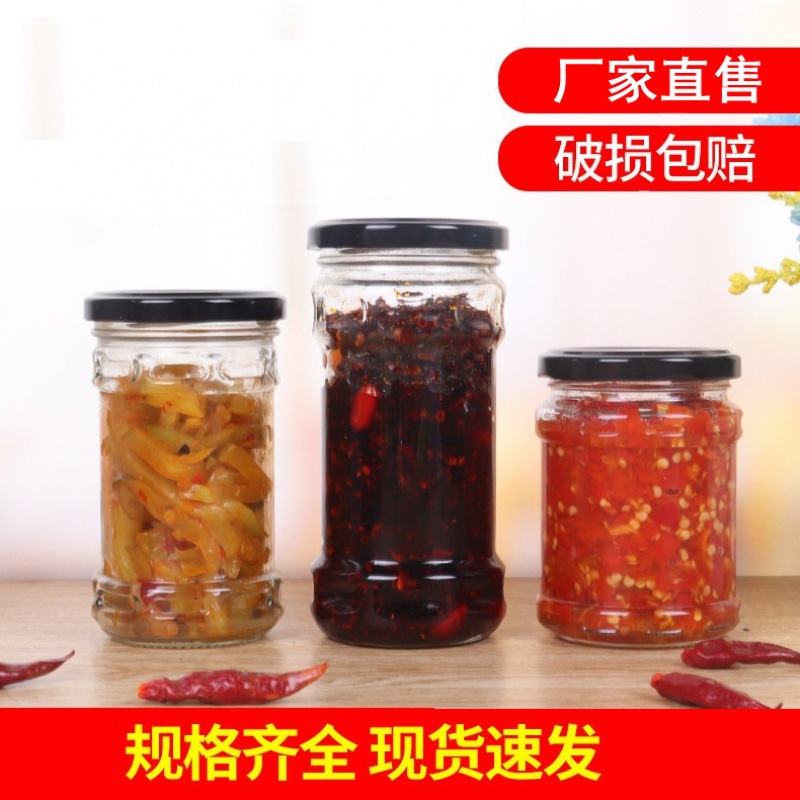 ラウンド渍物ガラスボトル195ml 240ml牛肉チリソース缶诘包装クリアシール盖付き発泡スチロールボックス