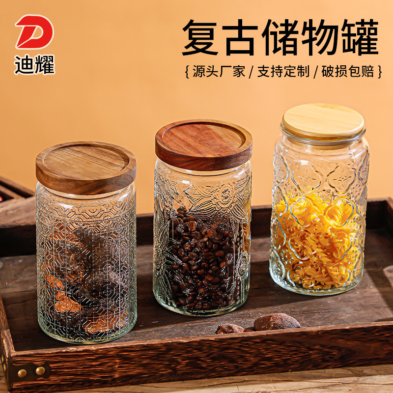 多機能ガラス保存瓶、レトロなガラス瓶、密封瓶、茶瓶、穀物保存瓶の卸売供給