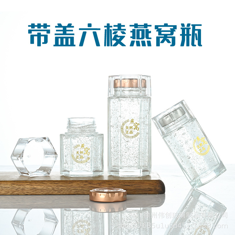 卸売りのツバメの巣は瓶のガラスの高級なカバーの六角形の蜂蜜の瓶を分けて缶の家庭の新鮮なツバメの巣の瓶を密封します。