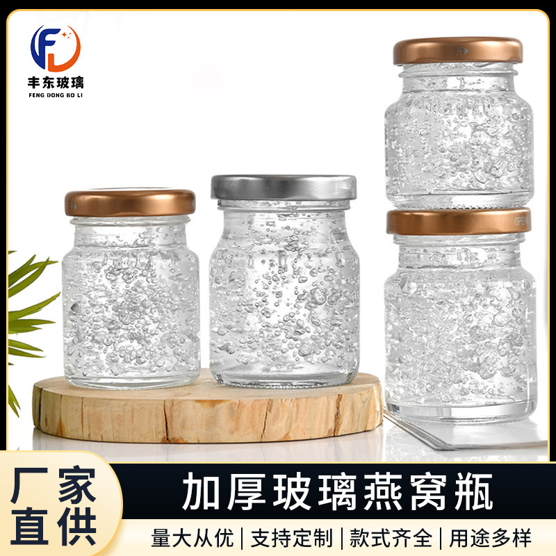 新しい多機能すぐに食べられる新鮮な煮込みツバメの巣をガラス瓶に詰め替え、食品グレードの高温耐性と調理可能なスケトウダラのミルクゼリーボトル