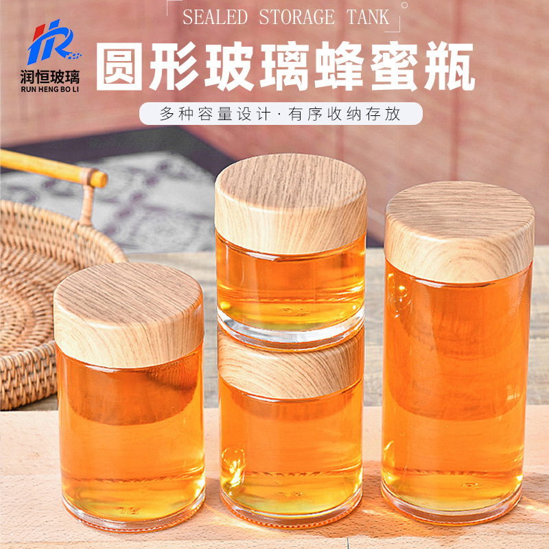 卸売りスポット蜂蜜瓶ジャム瓶蜂蜜分注瓶木目蓋ガラス瓶密封缶食品級空瓶