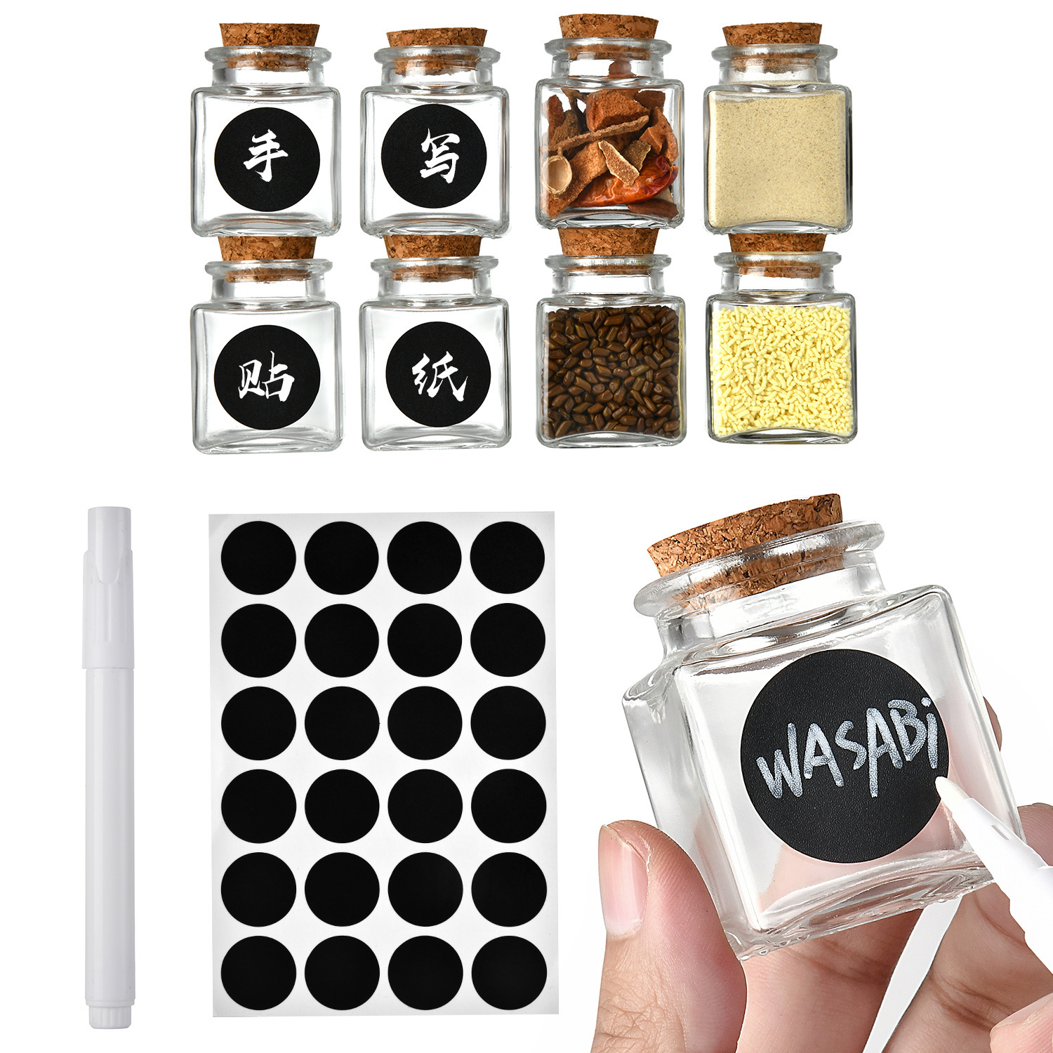 卸売ガラスボトル小さな願いボトル願いボトルキッチン詰め替えボトルアマゾン正方形の小さな調味料瓶保存瓶