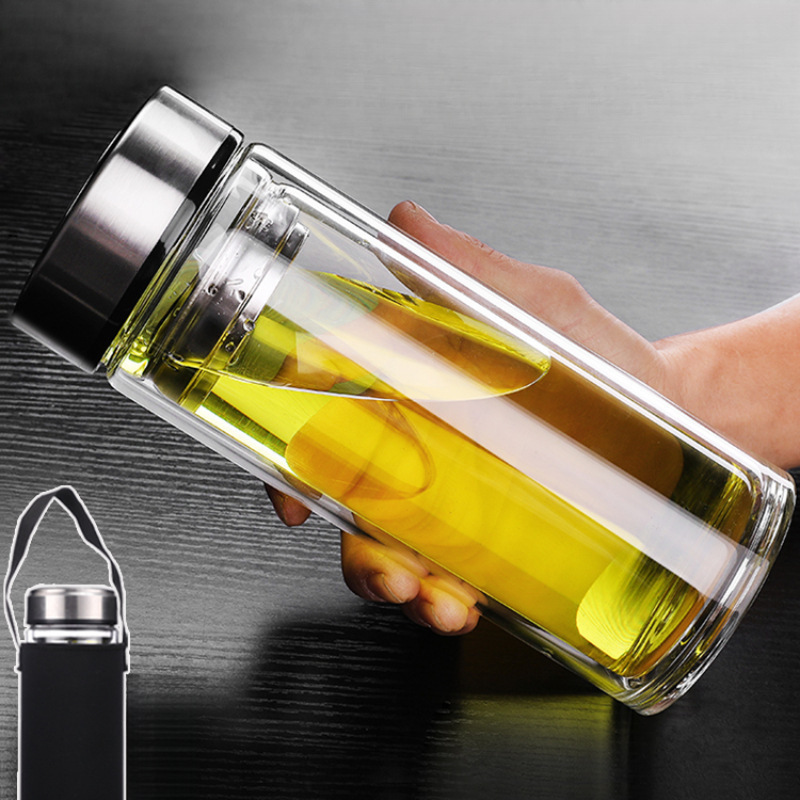 1.5リットルの大容量二重層ガラス耐熱防爆ティーカップ男性と女性のウォーターカップ屋外ポータブルウォーターボトル