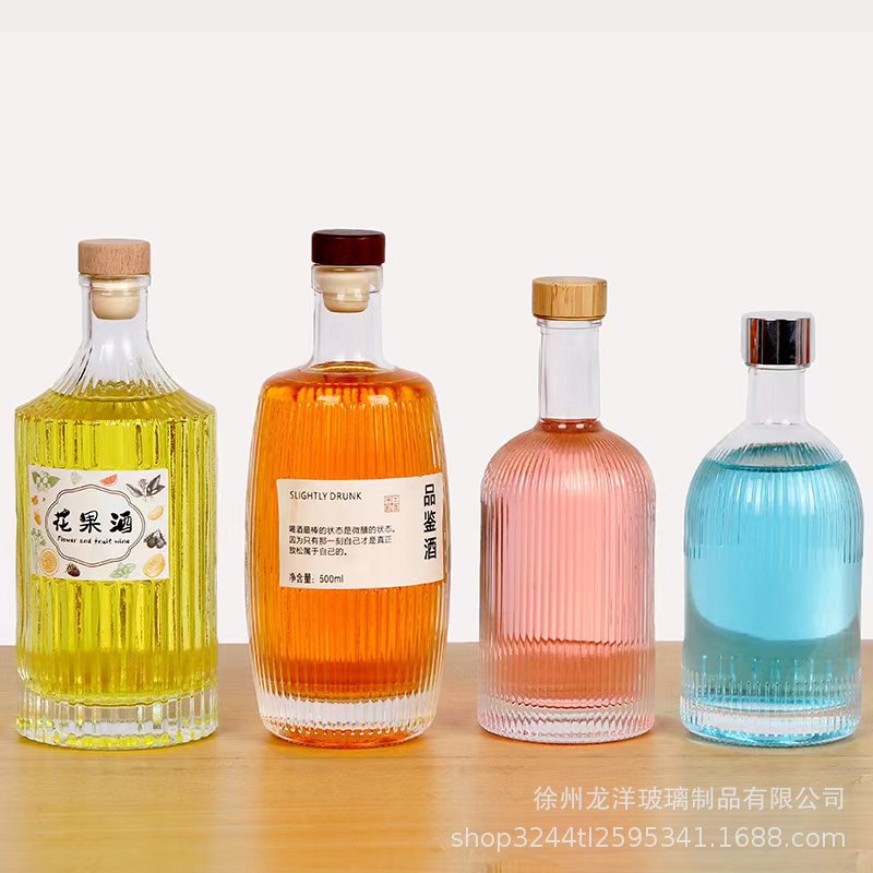 新しい 500 ミリリットル透明な酒瓶クリスタルホワイトガラス空のワインボトルガラス蓋密封されたボトル蓋付き
