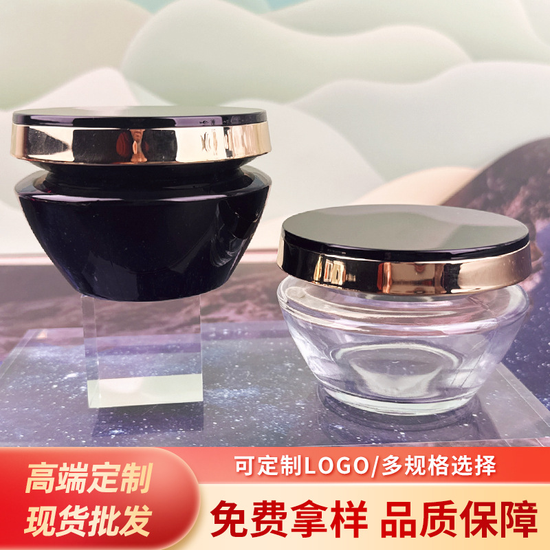 110 グラムハイエンドフェイシャルマスクサブボトルブラックダイヤモンドヘアマスクボトル円錐形透明ガラスボトル 50 グラムキャビアヘアマスクボトル