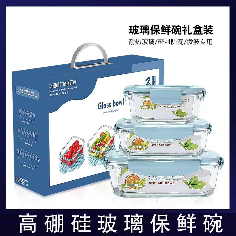 翁楷耐熱ガラス鮮度保持ボウル電子レンジ家具店広告LOGOギフトボックスセット実用的に客先に送る
