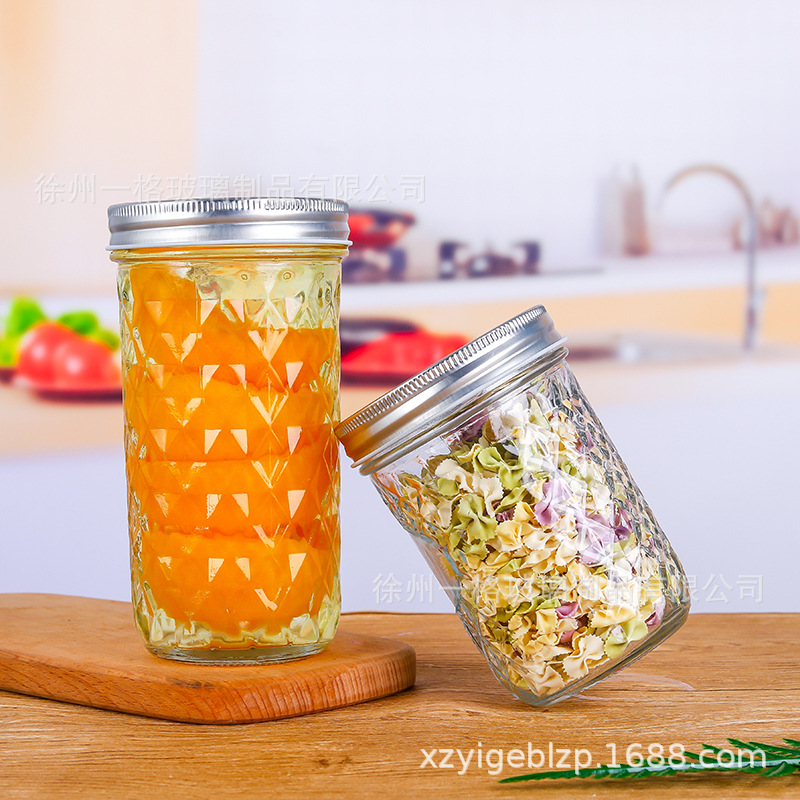 食品級ダイヤモンド菱形メイソンカップストレージ缶キャビアキッチン雑穀分注ガラス瓶アマゾン専用