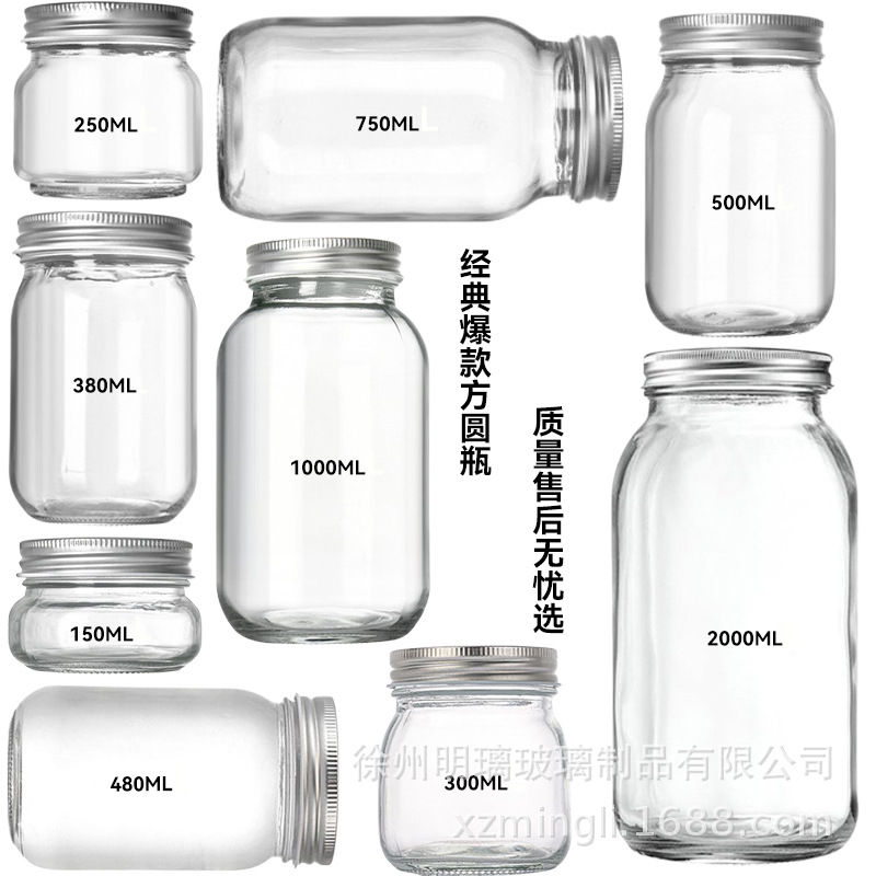 卸売正方形と円形のガラス瓶食品グレードのメイソン密封瓶蓋付き厚みのある透明な円形の保存瓶ピクルス瓶