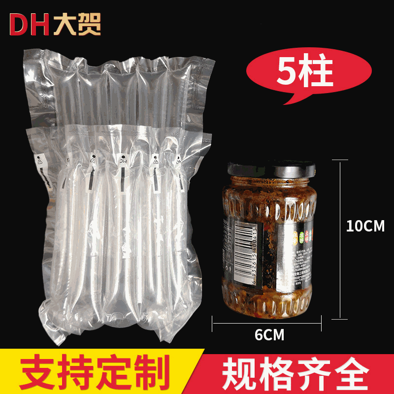 卸売り5柱カプサイソース気柱袋燕窩防振緩衝気泡膜袋ジャム空気充填気泡柱袋