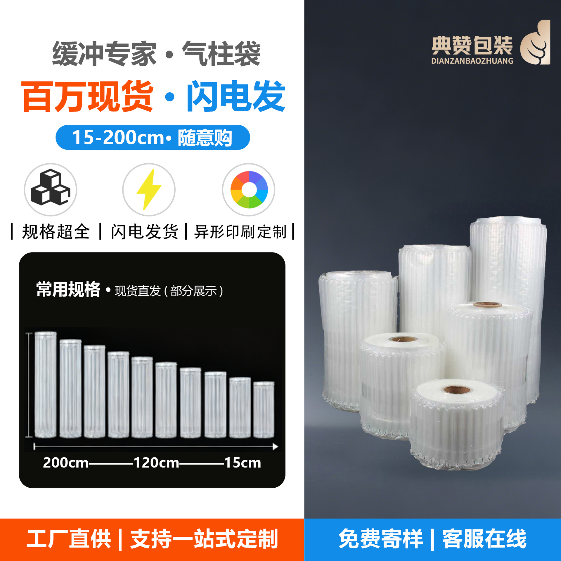 現物気泡柱袋メーカー果物ガス柱袋充填柱コイル材速達緩衝包充填空気袋卸売り