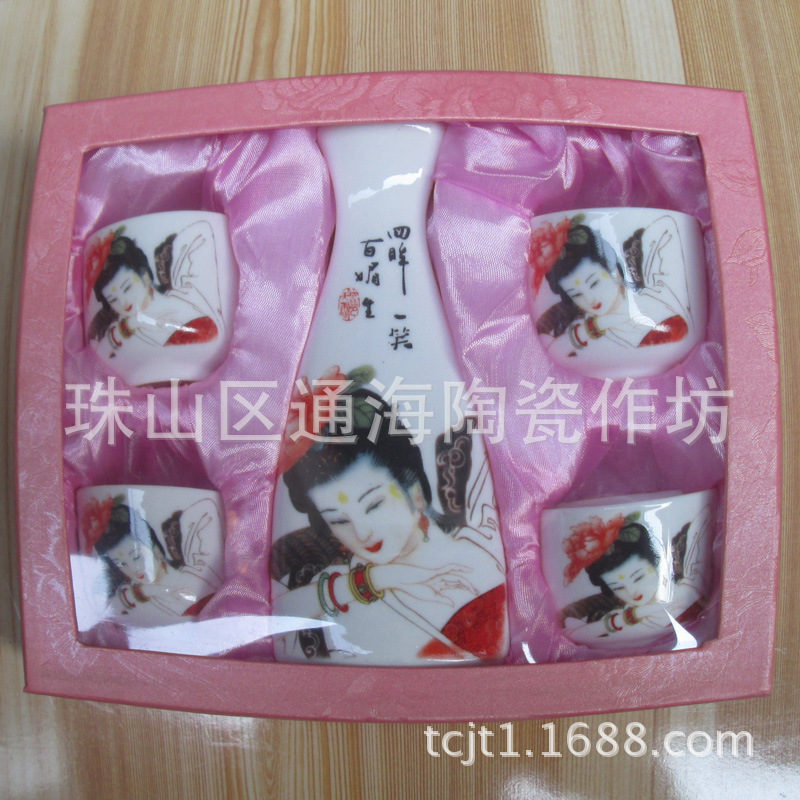 現物は景徳鎮の陶磁器の日本式の酒の器の5セットの酒の器のセットの杯の酒の壺の多くの種類を供給します。