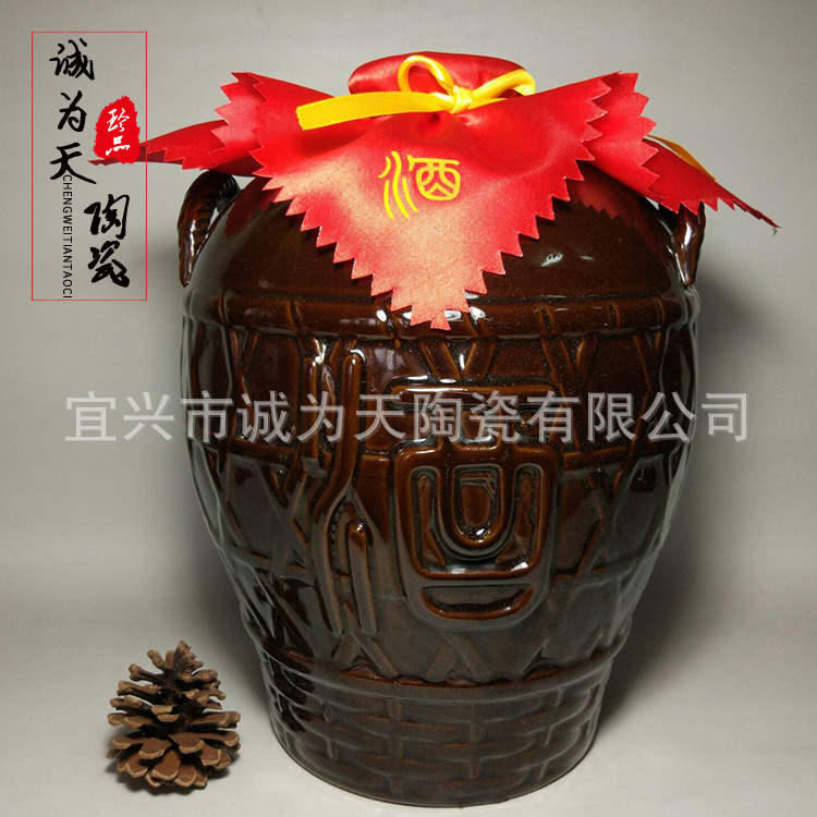 宜興土陶十斤竹編双耳酒字壇陶磁器酒瓶紫砂保健陶磁器瓶白酒陶磁器空瓶