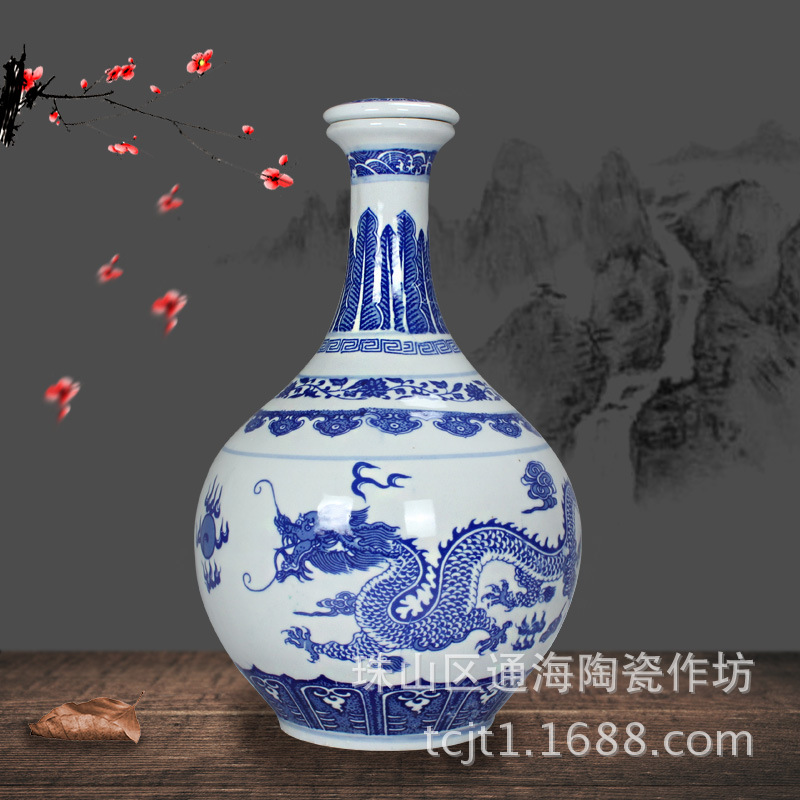 白酒瓶景徳鎮陶磁器5斤10斤酒壇は彫刻酒壇白酒瓶酒壇10斤龍壇を加えることができる