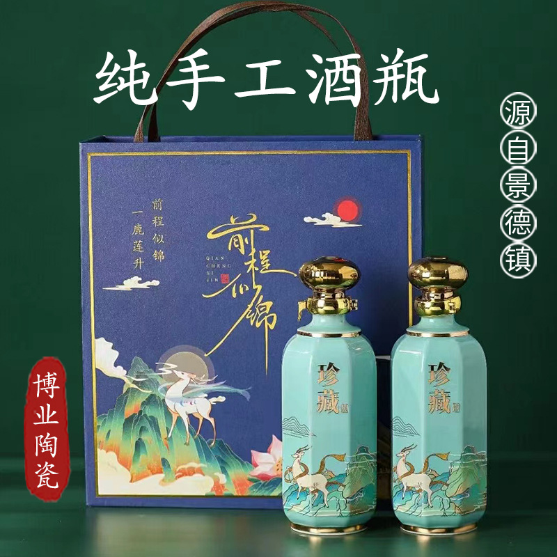 景徳鎮陶磁器酒瓶1斤500ml中国紅白酒瓶空酒瓶家庭用密封酒瓶セット箱