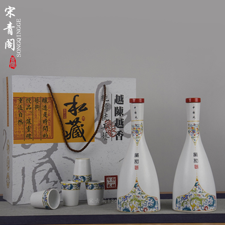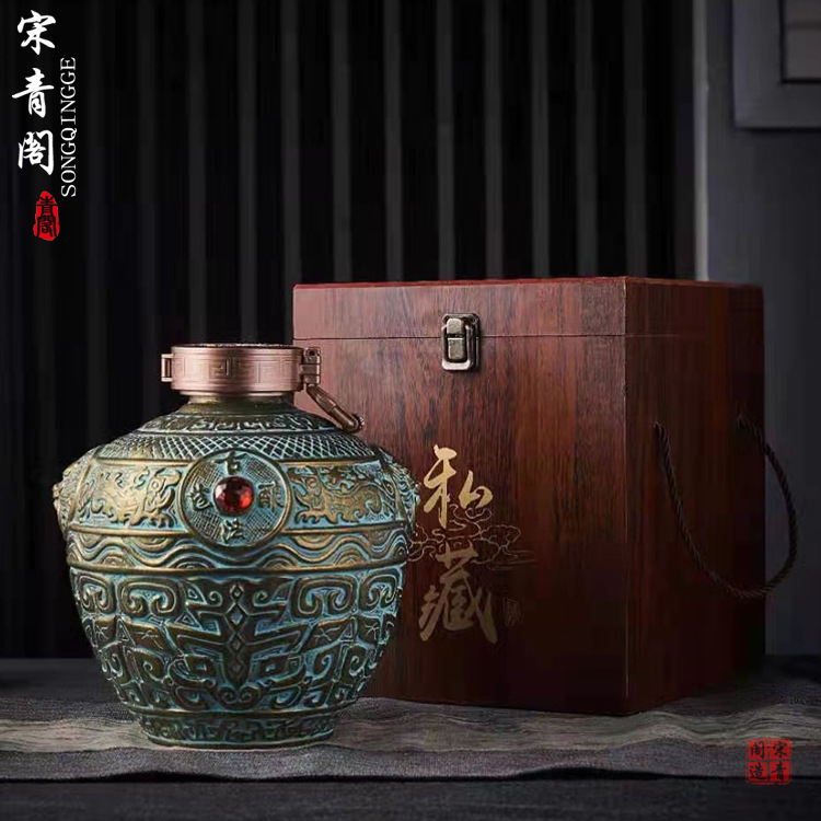 レトロ木箱ギフトセット私蔵密封酒瓶5斤空白酒瓶陶磁器5斤卸売り景徳鎮