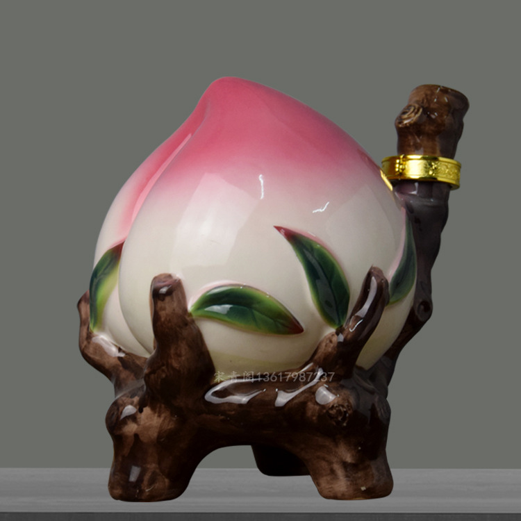 エナメル彩5斤入り寿桃陶磁器酒瓶コレクション錦箱酒具は目上の人に誕生祝いのプレゼントを贈る景徳鎮