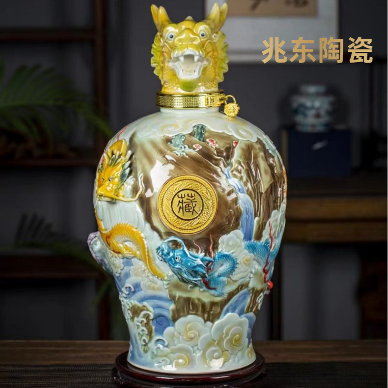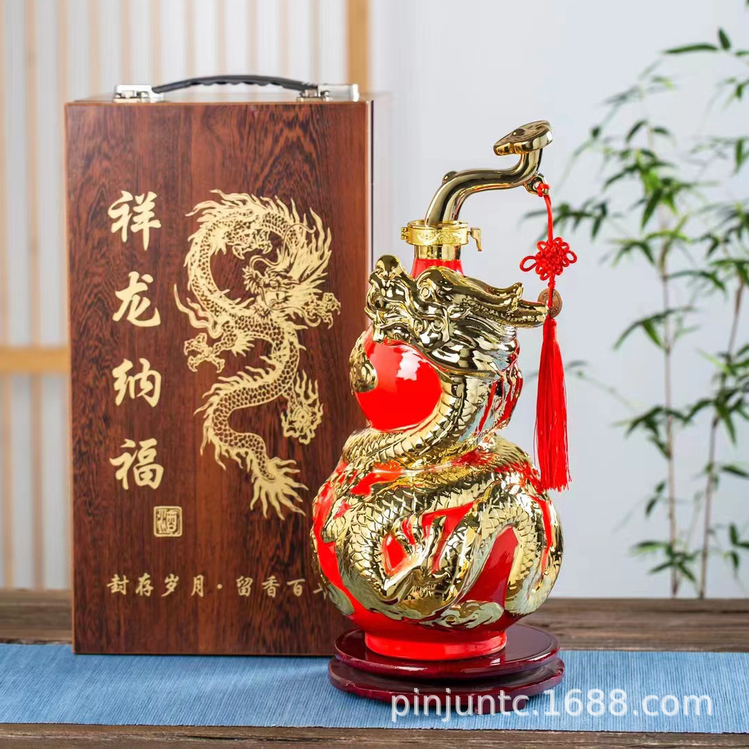 景徳鎮陶磁器酒瓶5斤ひょうたん造形瓶芸術酒壇ひょうたん龍酒びん創造的な置物コレクション
