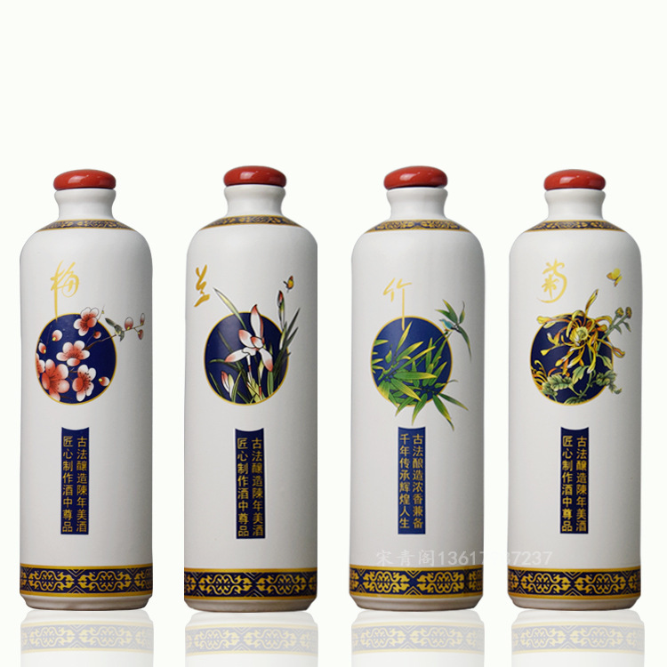 景徳鎮陶磁器酒瓶梅蘭竹菊500mlギフトセット空白酒瓶1斤酒缶酒壇