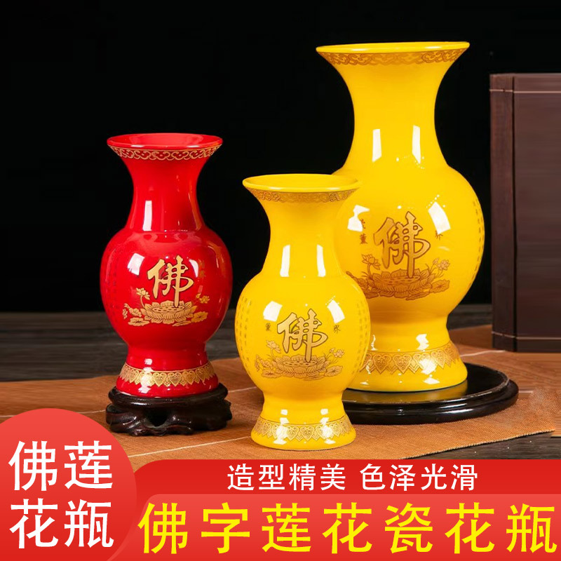 陶磁供仏唐彩黄供寺観音浄瓶花瓶仏前生け花花瓶仏前飾り仏具置物