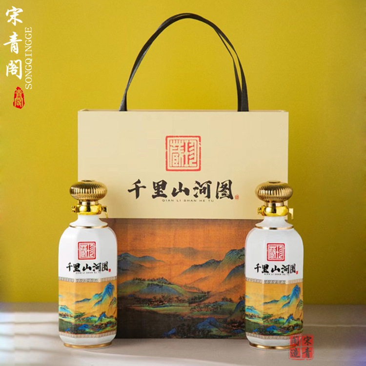新商品の高颜値上のランクの景徳鎮の陶磁器の酒の瓶の1斤は山水図の贈り物のセットの1斤の空の酒の壺を詰めます。