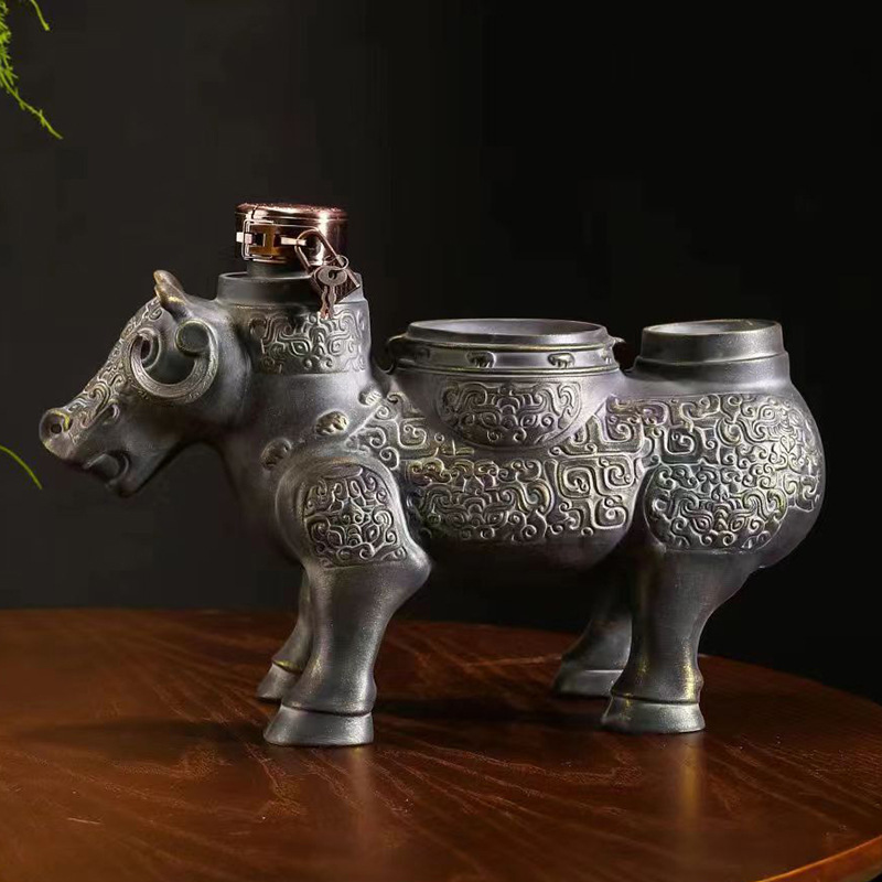 創意3斤5斤擬似青銅器陶磁器酒瓶獣樽5斤彫刻工芸芸術コレクション置物空酒壇
