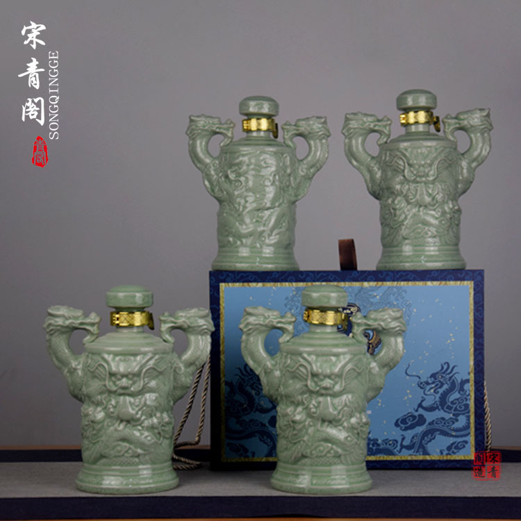 景徳鎮の創意陶磁器の酒の瓶の1斤は肖龍の酒のつぼの家庭用の密封の装飾の贈り物の置物の1斤を詰めます。