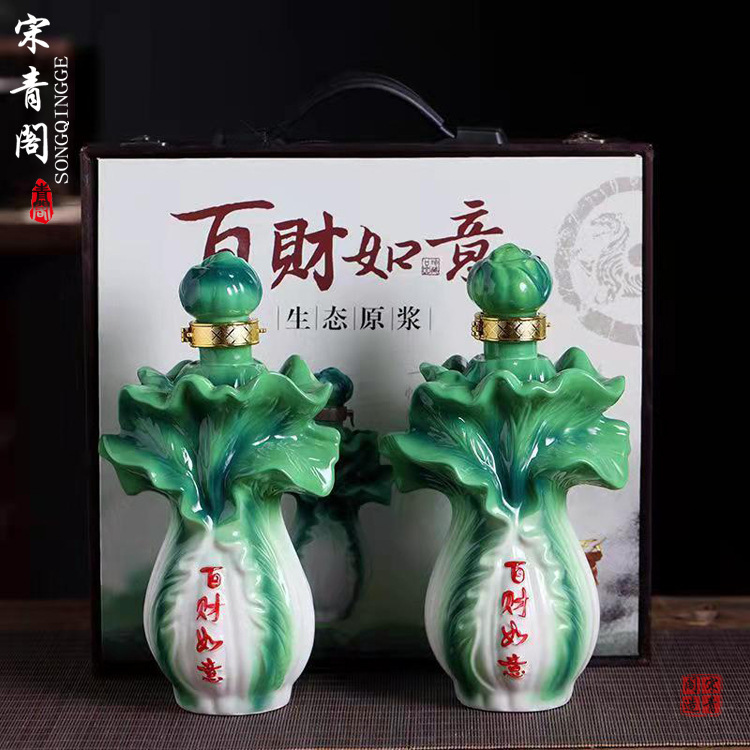 景徳鎮創意財大業大エナメル彩白菜ギフトセット陶磁器酒瓶4斤入空白酒瓶