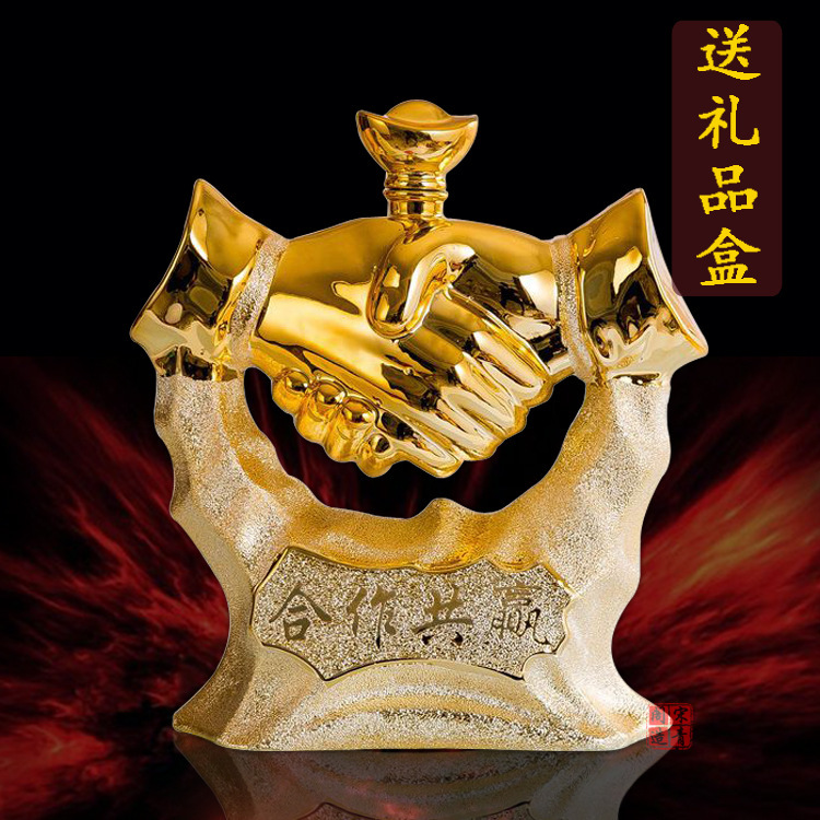 景徳鎮の陶磁器の酒の瓶の5斤の金メッキの空の酒の瓶の黄色の百財の如意の創意の装飾の置物の密封の酒の壺