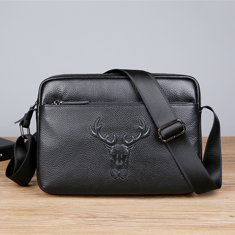 国境を越えた新型男性斜めショルダーバッグ真皮ヘラジカシングルショルダーバッグ横型トップ牛革男性バッグビジネスレジャーバッグ