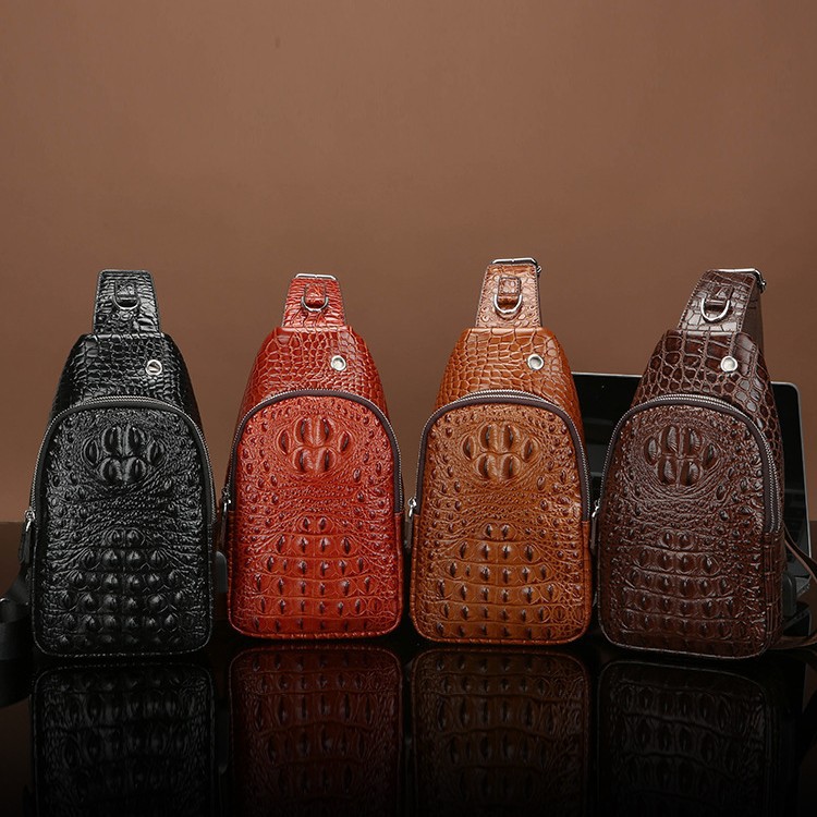 クロスボーダー躍森男包本革胸包男性頭層牛皮斜めショルダーバッグファッションカジュアルリュックサックレイシ紋