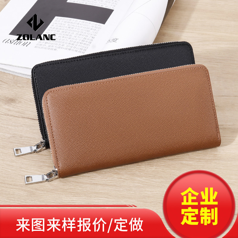 男性用ジッパー付きロングタイプのハンドバッグ十字紋牛革ビジネス財布手首帯多チャック袋カスタマイズ