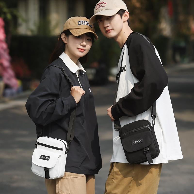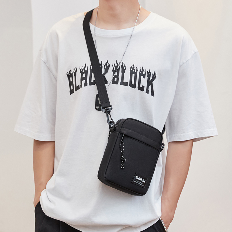 Ins日系潮牌斜めショルダーバッグ男性個性レジャースポーツ小リュックサック軽量シンプル純色ナイロン郵便バッグ