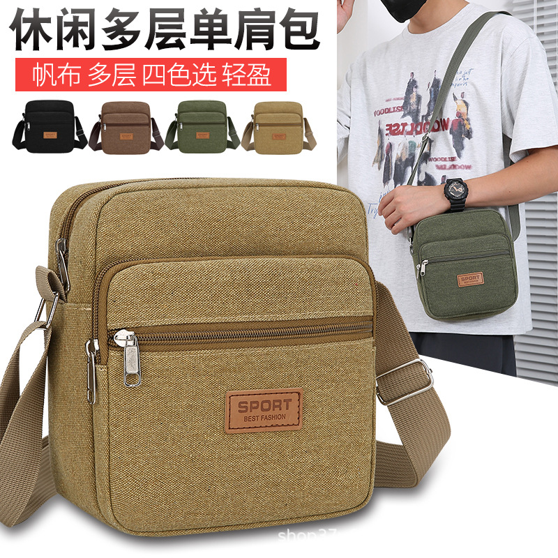 多層ビジネスバッグ財布キャンバス斜め掛け女性カバンショルダーバッグカジュアルバッグ男性用小方バッグ