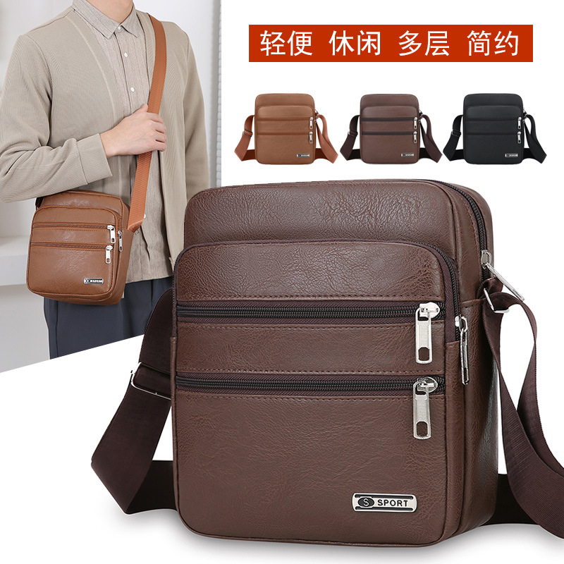 ビジネス旅行のシンプルな男性ショルダーバッグ大容量カジュアルな斜めショルダーバッグ韓国版PUソフトレザーファッション男性バッグ