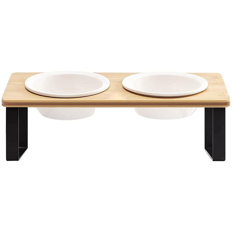 工場直販竹ペット猫ボウル給餌ラック家庭用小型犬と猫ダブルボウル分類水とフードラック