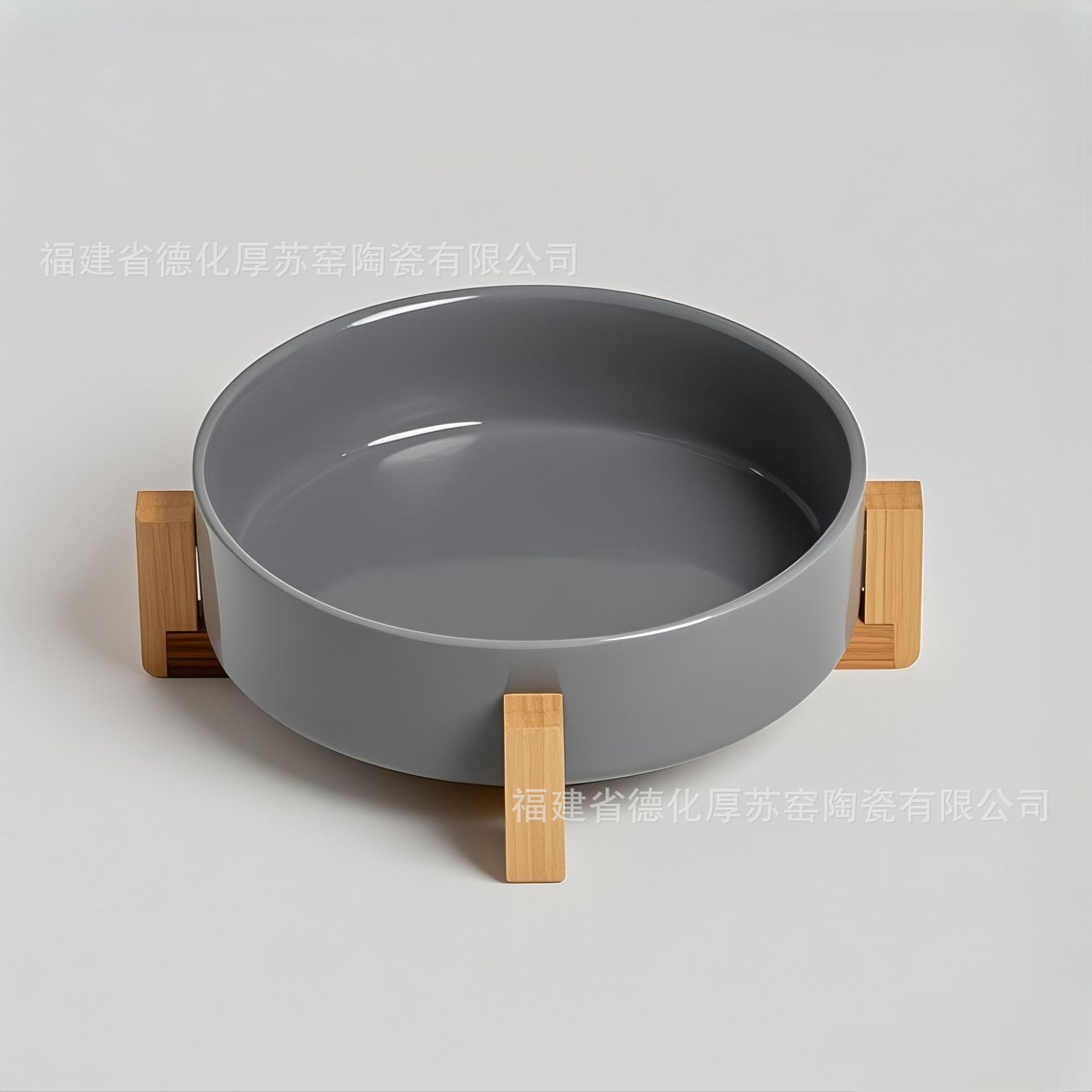 竹木製スタンド付きカスタマイズされた花柄ストレートボウル、家庭用ペットボウル、セラミックボウル、猫ボウル、犬ボウル、転倒防止水ボウル、犬ボウル