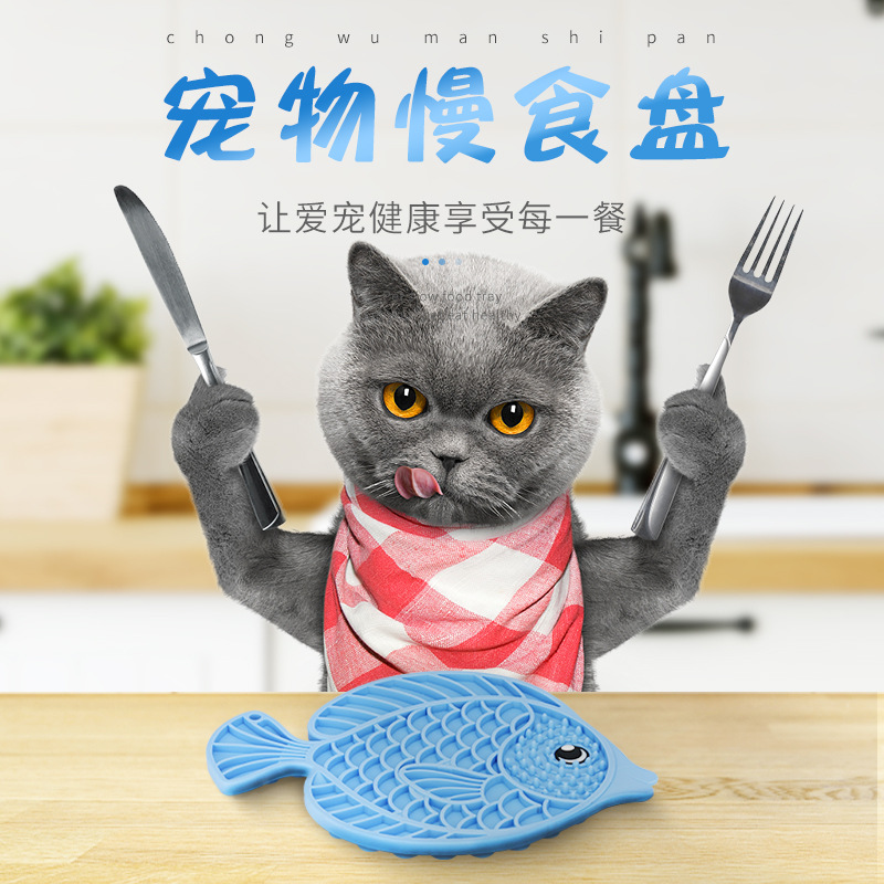 現物のシリカゲルのペットの緩食の皿の魚型の猫の犬は食事を訓練してむせ防止の吸盤はゆっくり食べる皿を吸着します。