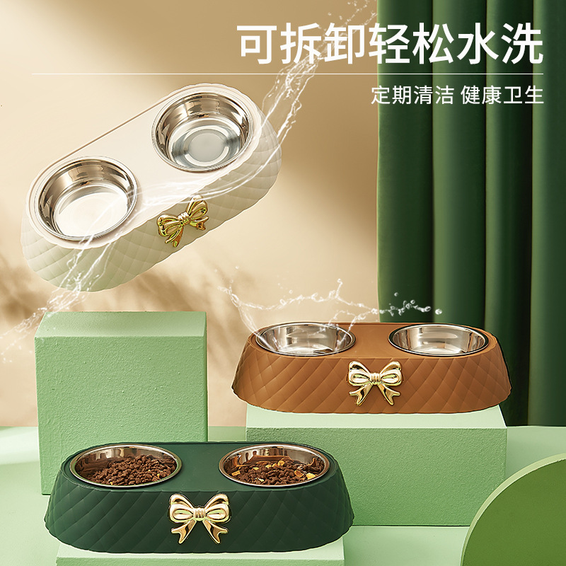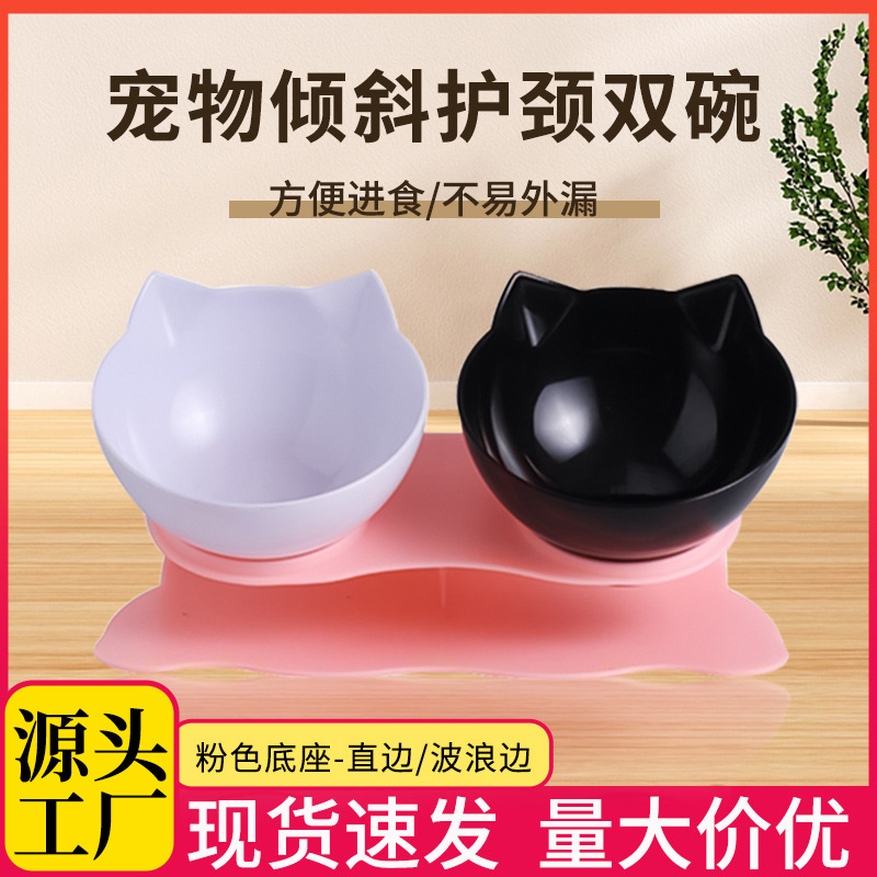 越境猫碗犬碗猫双碗滑り止めペット猫盆猫食盆猫犬飯盆保護脊椎ペット碗