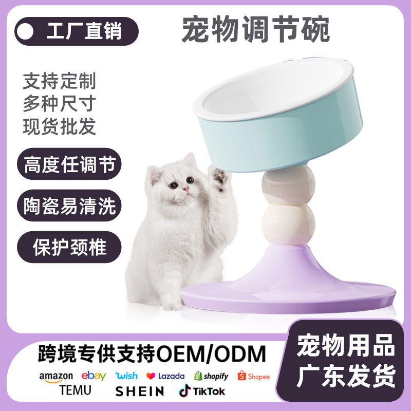 国境を越えた新しいペット用品、首の保護、背の高い猫の餌入れ、転倒防止、調節可能な犬の飲料水フィーダー