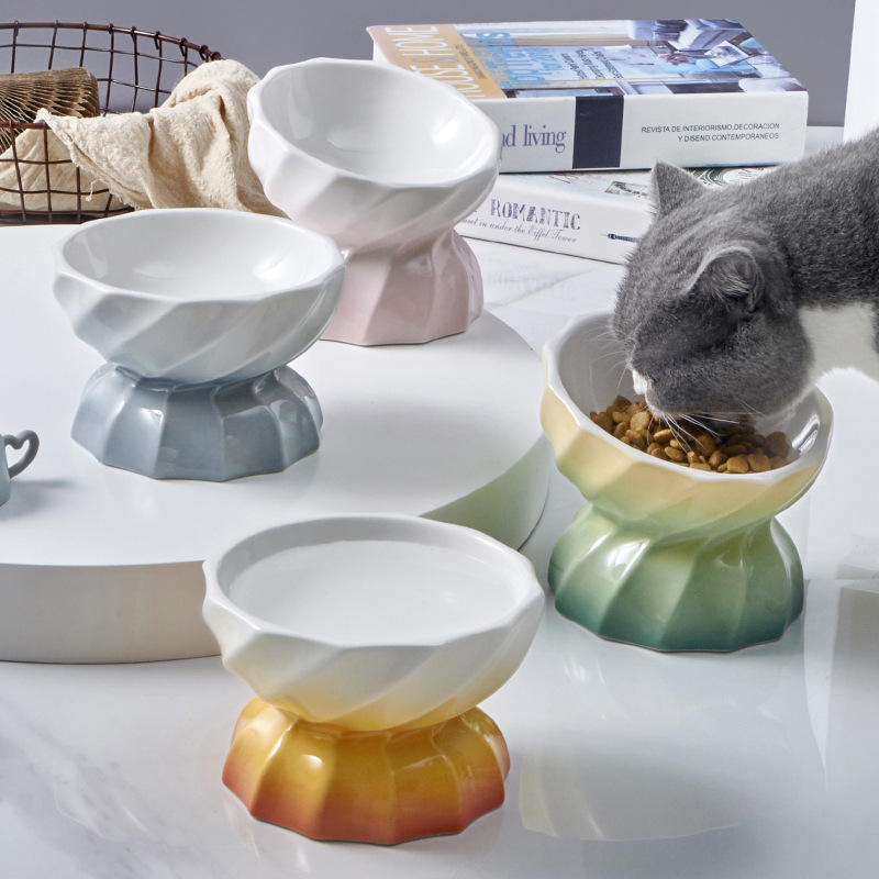 HCT-P141 キャンディーグラデーションセラミック面取りペットボウル猫ボウル猫特別なスナック絶妙なホーム