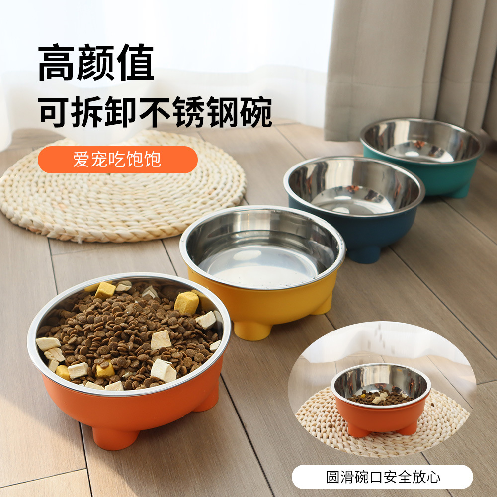 越境創意水波紋碗高級感ペットプラスチック碗首保護高脚ステンレス猫碗犬食盤犬碗