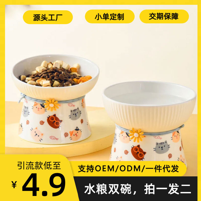 メーカー直販陶磁器ペット碗猫碗犬碗大重量水糧碗双碗保護頚椎猫食盆