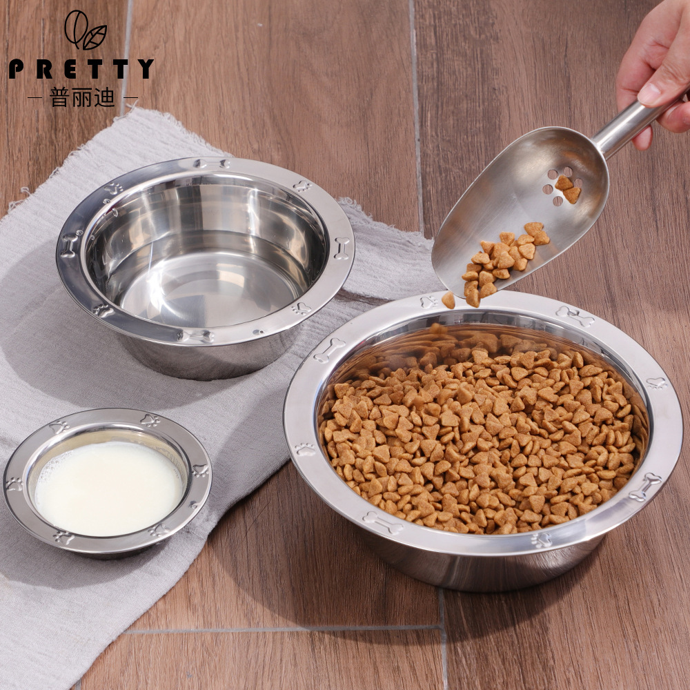 ステンレス犬碗オーダーメードのロゴの広い辺の鋼印のペットの碗の飲用水のペットの食器の卸売りの犬の鉢の用品は餌を与えます。