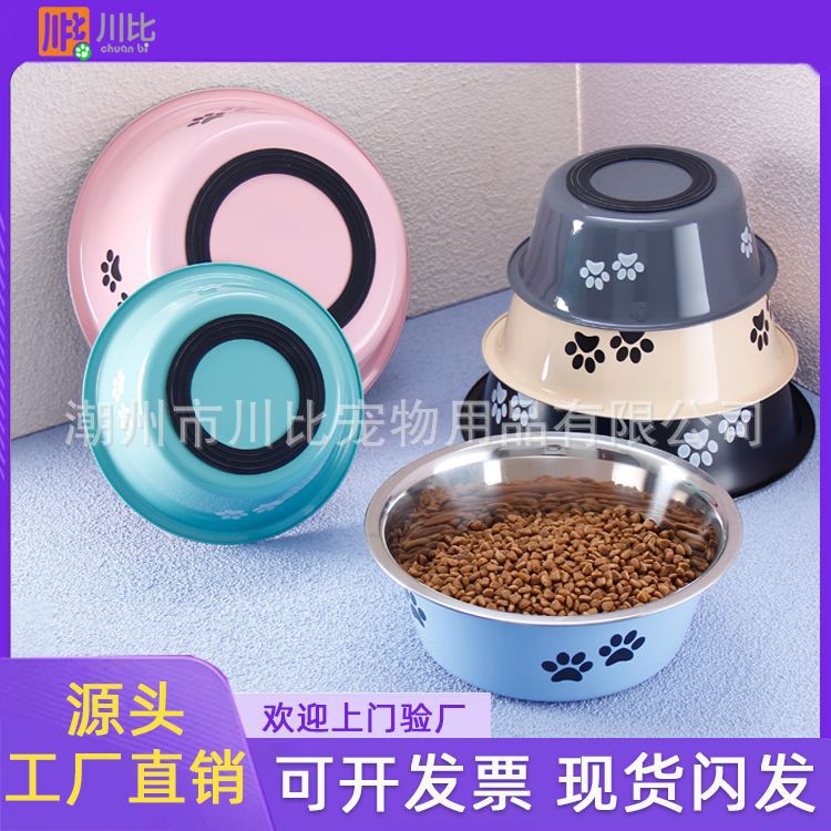 ステンレスの滑り止めプリントペットの碗は猫と犬の食器をひっくり返して水を飲んで碗の大容量に食糧のたらいの現物を与えます。