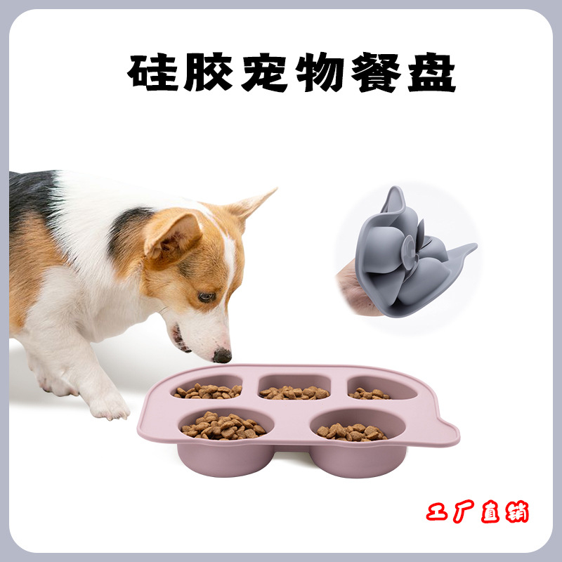 国境を越えた新しいシリコンペットコンパートメントディナープレート、スローフード舐めマット、パッド、窒息防止スローフードプレート、吸盤付き給餌プレート