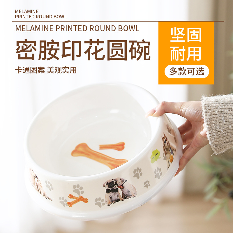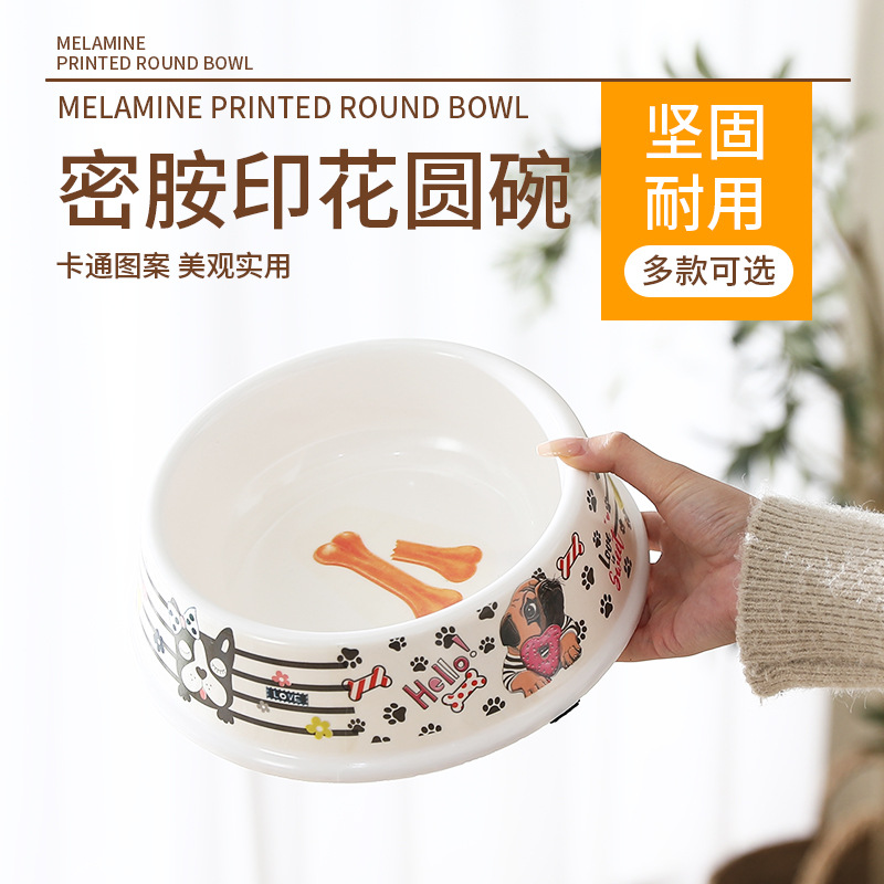 漫画メラミン円形ペット猫犬食器大口径転倒防止プリント猫ボウル大容量ペット猫フードボウル