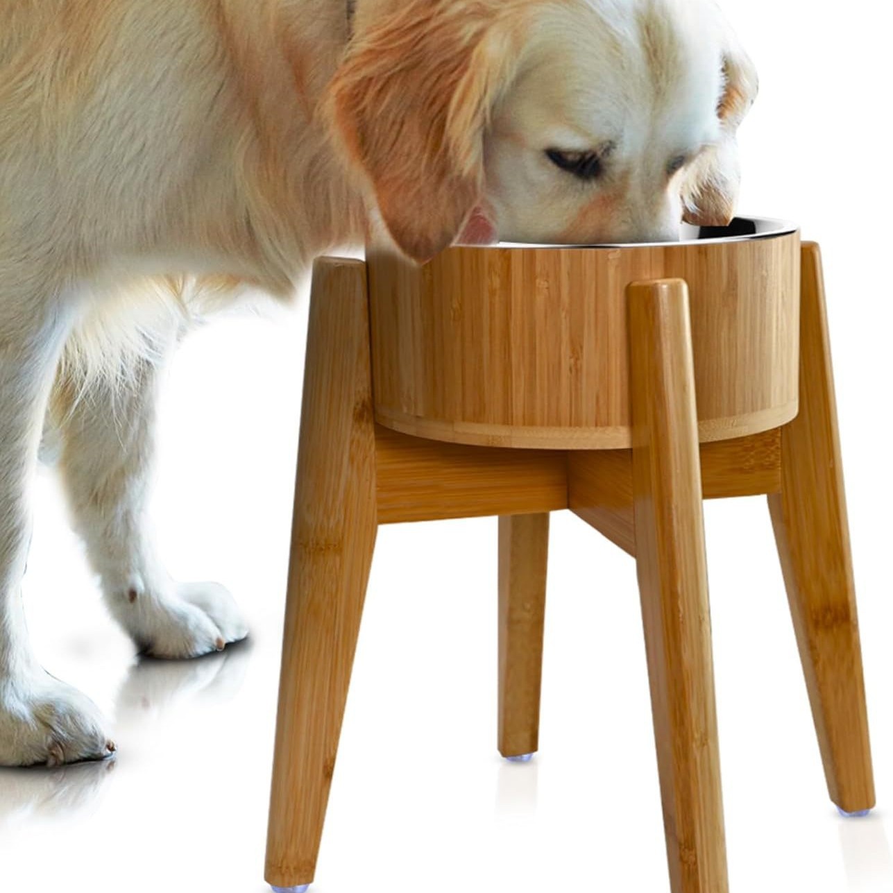 大型犬用のボウルと食器、頸椎を保護する木製の高架ペットフードフィーダー、転倒防止のための飲料水ボウルが在庫あり