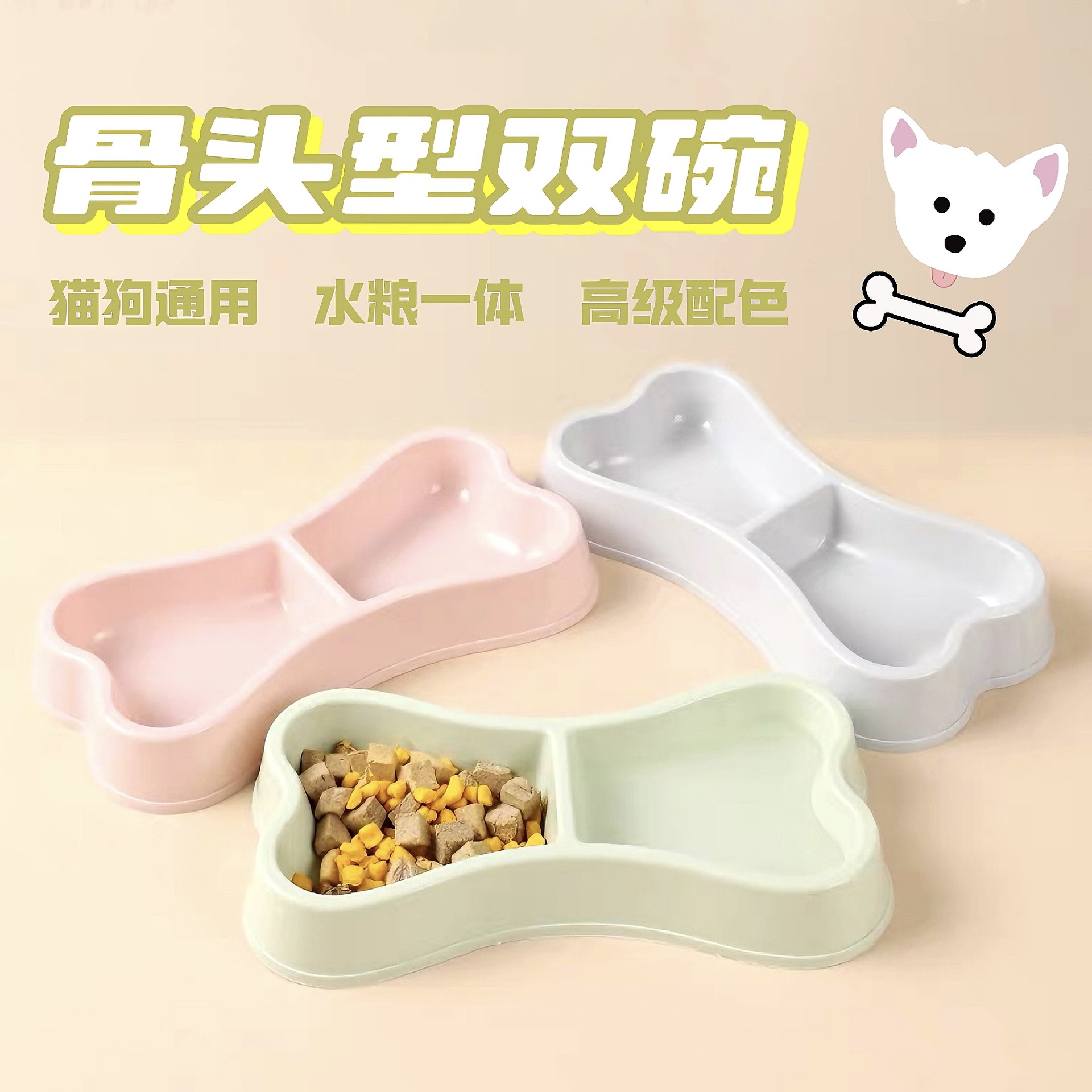 犬骨型プラスチック双碗猫犬通用食盆テディ飯鉢水碗猫食器ペット用品
