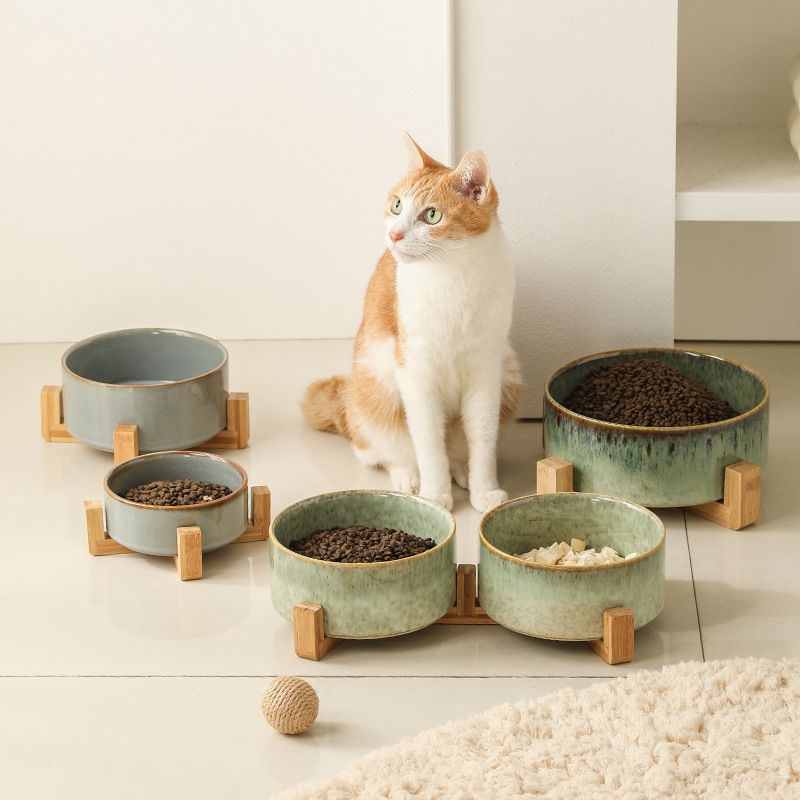 ペット用セラミックボウル、北欧猫ボウル、背の高いセラミックキャットフードボウル、スナック缶、頚椎症防止、転倒防止キャットフードボウル
